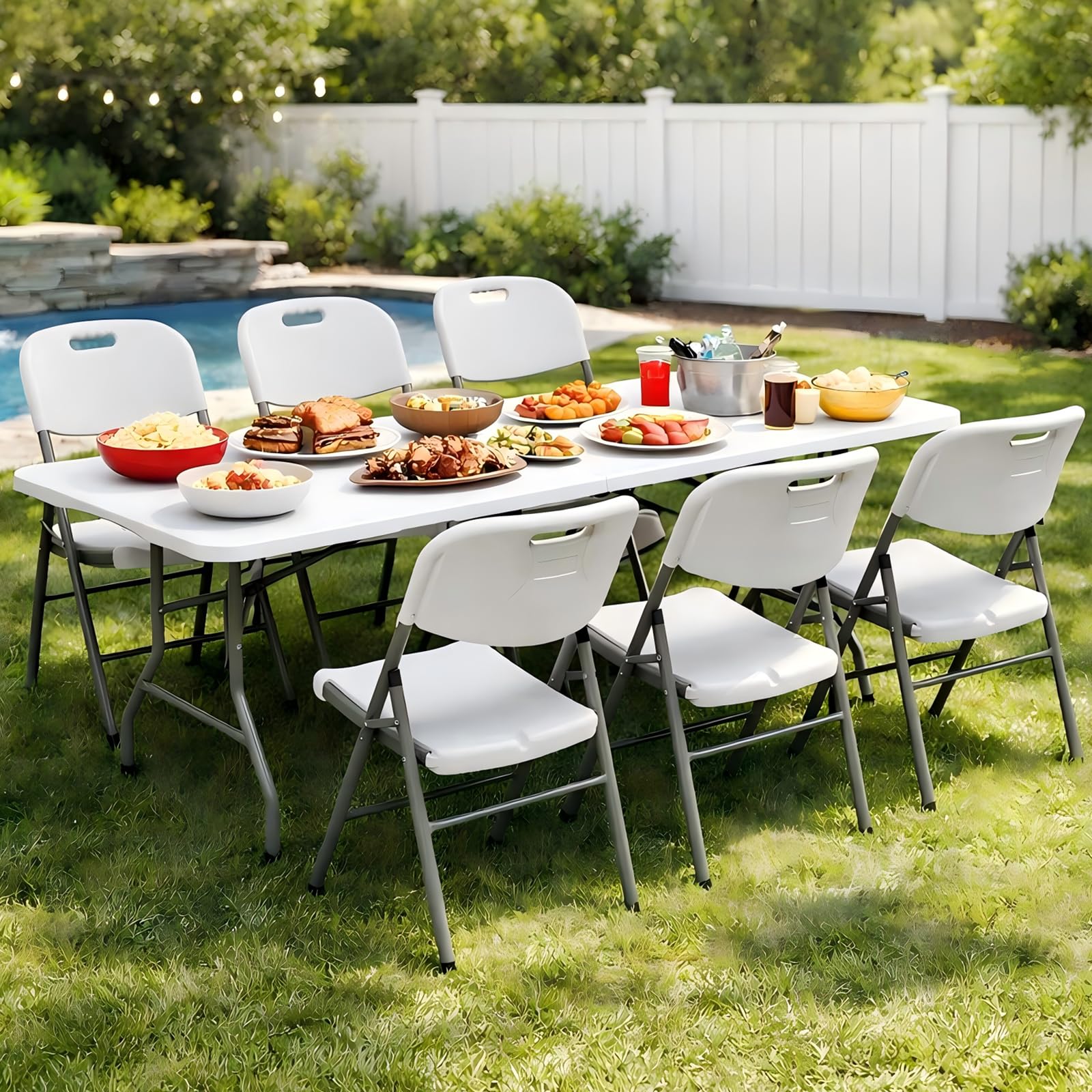 - INDOOR & OUTDOOR MULTI-PURPOSE TABLE: Waterproof, stain-resistant and easy to wipe clean, this versatile folding utility table works great both indoors and outdoors. Ideal for holiday dinners, camping, picnics, BBQs, weddings, birthday parties, tailgating, buffets, kitchens, dining rooms, garages, offices, trade shows and more. One practical table covers daily needs, celebrations and special events with ease.